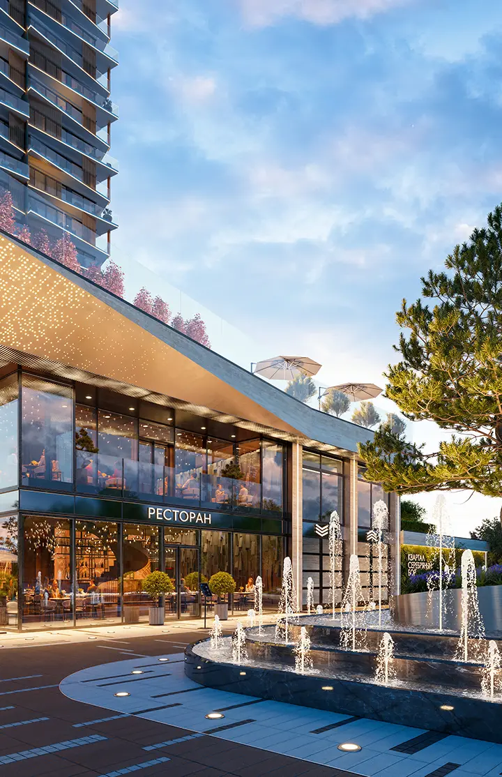 Приватная инфраструктура, доступная для резидентов: бесконечный бассейн, джакузи, lounge-зона, площадка для йоги, барная стойка, барбекю с грилем. Откройте по новому свой домашний отдых.