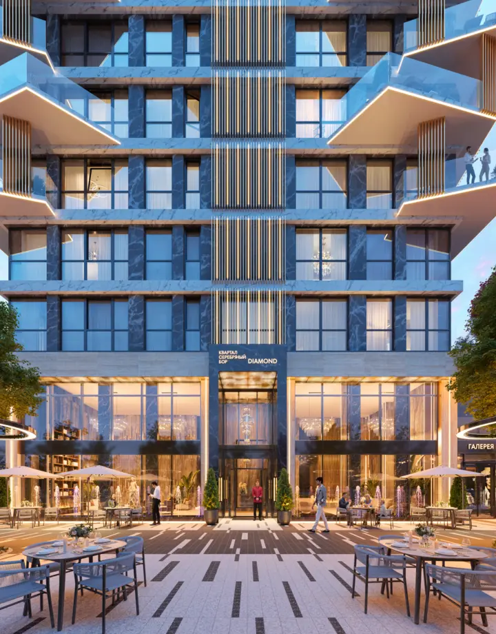 ЛАКОНИЧНЫЕ СИЛУЭТЫ БАШЕН, ЧИСТЫЕ КАК ДРАГОЦЕННЫЕ МЕТАЛЛЫ И КАМНИ, ПАРЯТ НАД СЕРЕБРЯНЫМ БОРОМ. ИХ ПРЕМИАЛЬНАЯ СУЩНОСТЬ И ОПРЕДЕЛИЛА ИМЕНА БАШЕН: GOLD, SILVER, PLATINUM, DIAMOND.