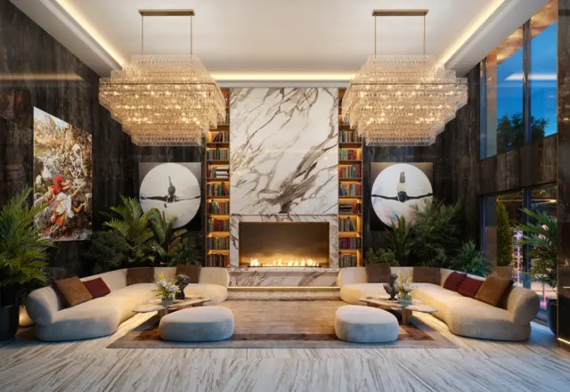 Открытые пространства, потолки 7 метров, изысканные мебельные детали и уникальные акценты - всё это составляет основу дизайна лобби.