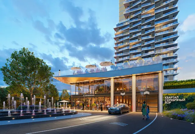 Неповторимый силуэт квартала формируют разновысотные башни с широкими террасными уступами. Лаконичность современных форм и пластичные линии фасадов служат здесь идеальным обрамлением для главного — безупречных панорамных видов на Серебряный Бор и реку.