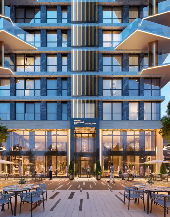 ЛАКОНИЧНЫЕ СИЛУЭТЫ БАШЕН, ЧИСТЫЕ КАК ДРАГОЦЕННЫЕ МЕТАЛЛЫ И КАМНИ, ПАРЯТ НАД СЕРЕБРЯНЫМ БОРОМ. ИХ ПРЕМИАЛЬНАЯ СУЩНОСТЬ И ОПРЕДЕЛИЛА ИМЕНА БАШЕН: GOLD, SILVER, PLATINUM, DIAMOND.